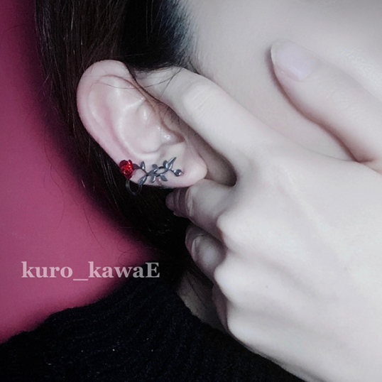 kuro_kawaE / 野薔薇の1輪ピアス[赤]左耳用