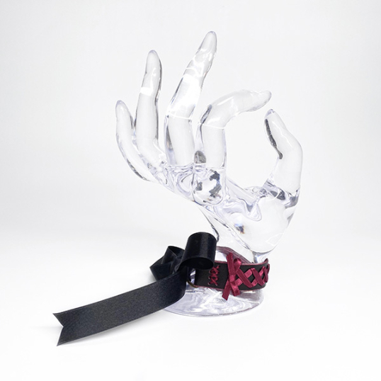 レザーにサテンリボンを基調とした