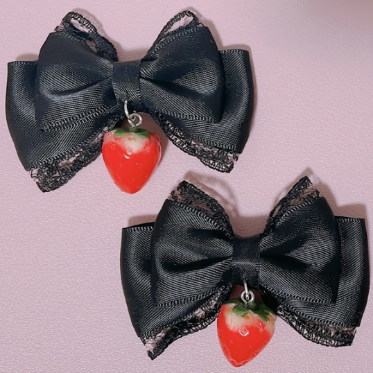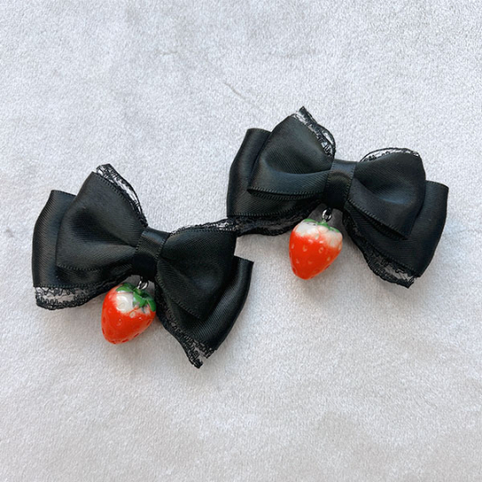 【即納】ののりぼん / ミニリボン いちごチャーム ブラック(NON003)