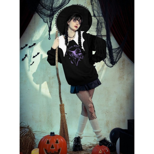 Dark in Love / Witching hour black and white contrast bat-neck sweatshirt