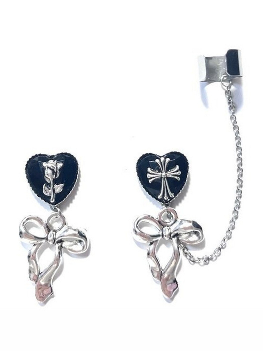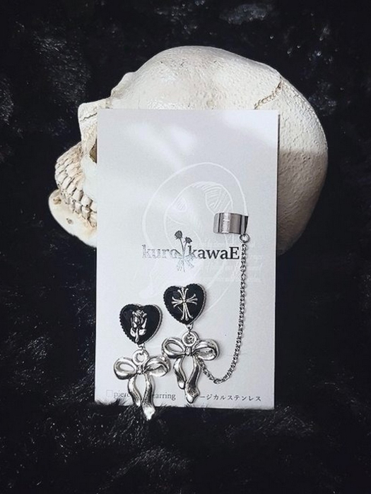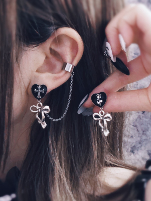 kuro_kawaE / ハートストーンのチェーンピアス-イヤリング両耳用[黒]
