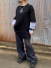 彩度を抑えた深みのあるブルーに、背中側へメイングラフィックを配置。