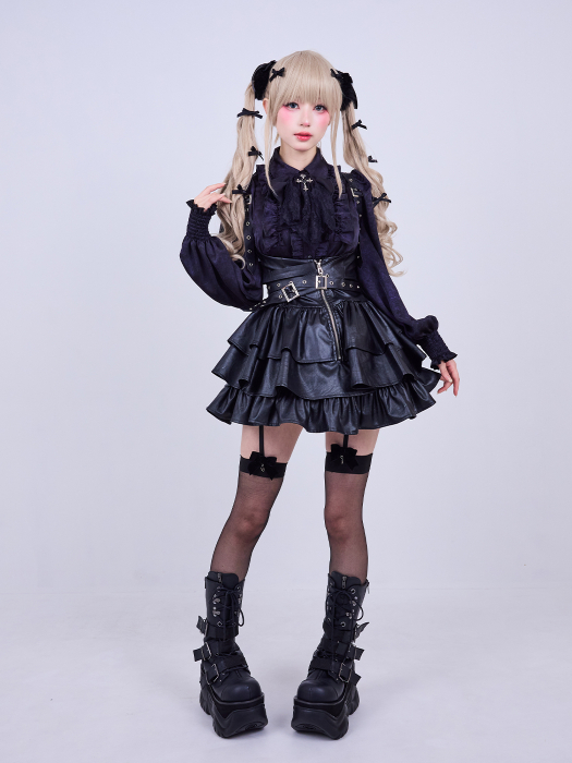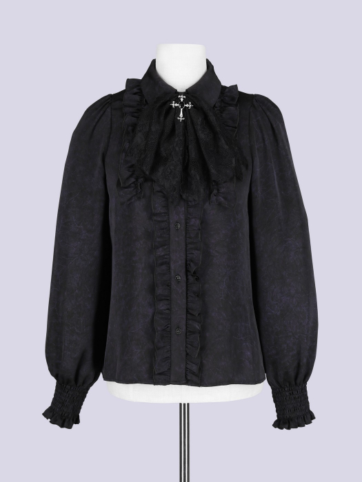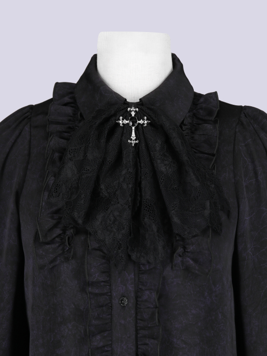 クラシカルなフリルにクロスチャームを添えた、闇を纏うフリルシャツ。