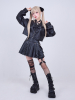 襟元に並んだスタッズと大きなリボン、胸元で輝くメタルチャームが