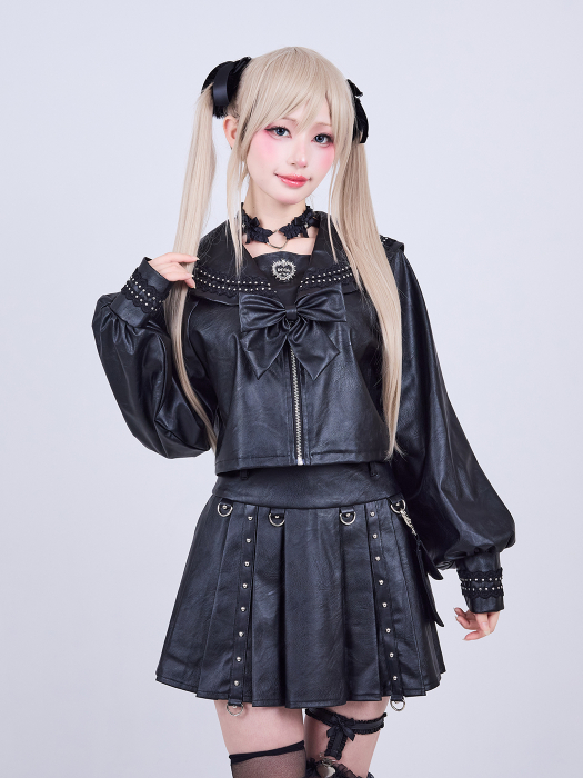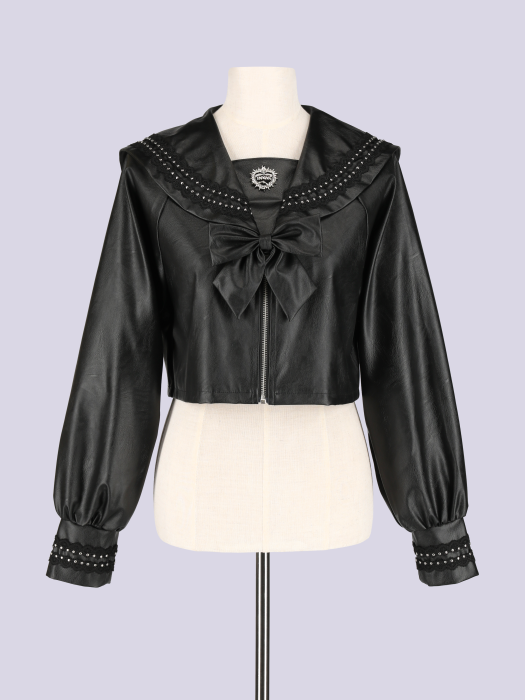 クラシカルなセーラーカラーを、ハードなレザーで再構築した