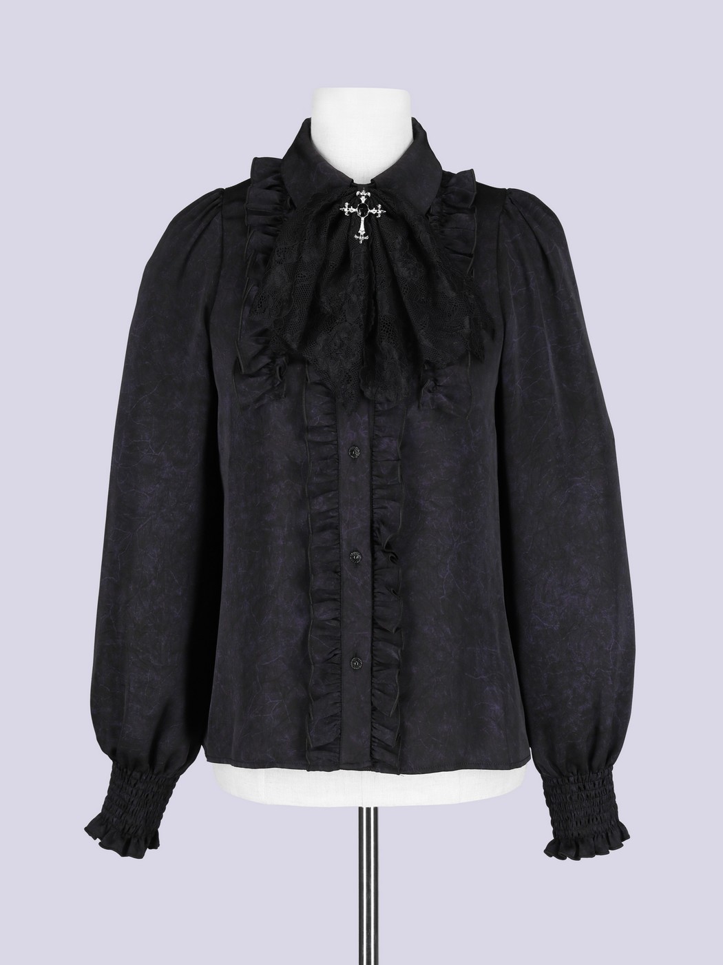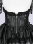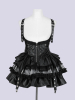 レザーとフリル、透け感ストライプを掛け合わせた、全方向無敵のドールライクドレス。