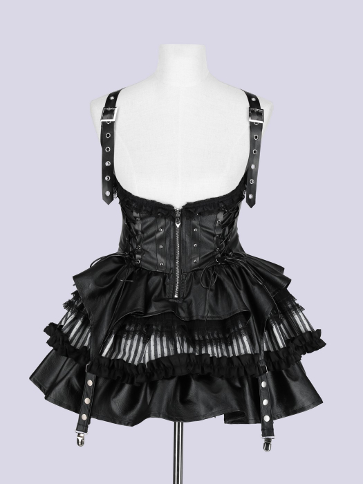 IMVAL / Lace Frill Leather Dress [STRIPE]