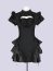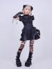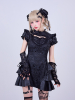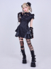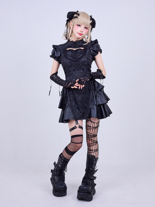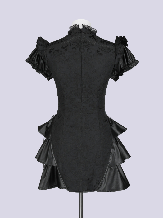 艶やかなジャカード生地に立体フリルとレザーを組み合わせ、
