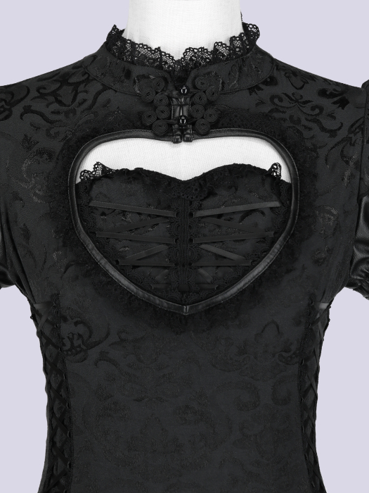 胸元のハートカットがドラマティックな視線を集める一着。