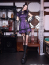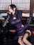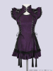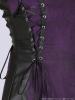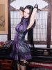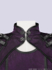 艶やかなパープルのジャカード生地に、レザー切り替えやレースアップ、フリル、タッセルなどを贅沢にプラス。