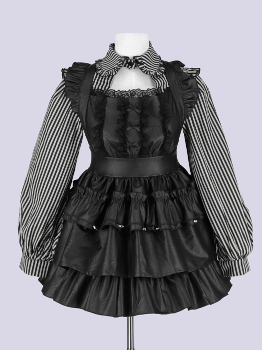 甘く可憐なフリルデザインに、程よい厚みと艶感のあるレザーを組み合わせた、圧倒的存在感を放つエプロン。