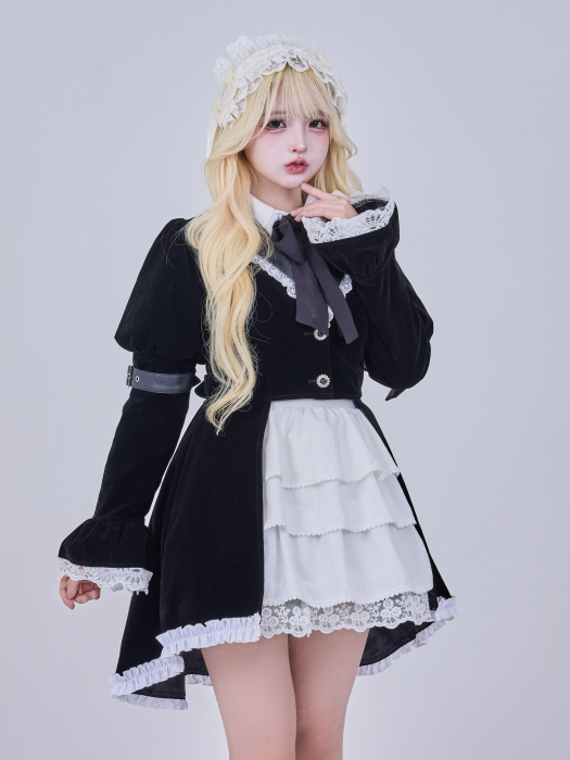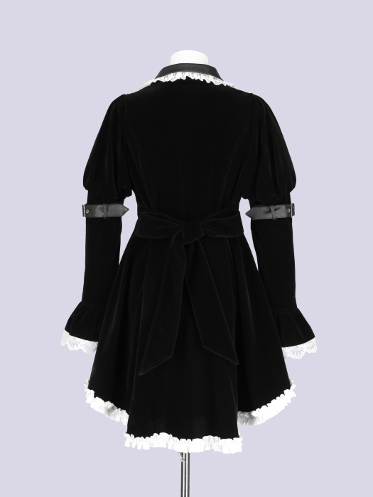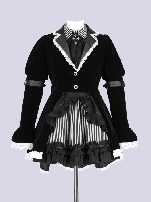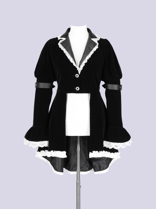 重厚感のあるベルベットにレースとPUを組み合わせた、華やかなゴシックジャケット。
