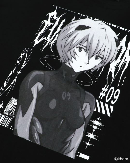 アヤナミレイ(仮称)のイラストを大胆にプリントしたグラフィックTシャツ。