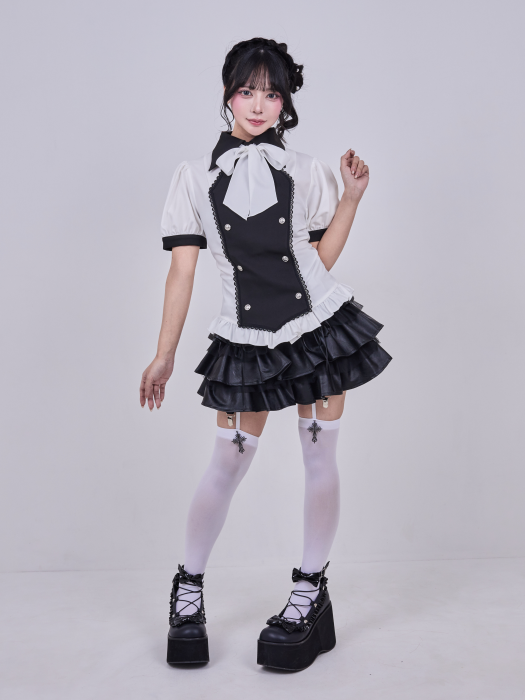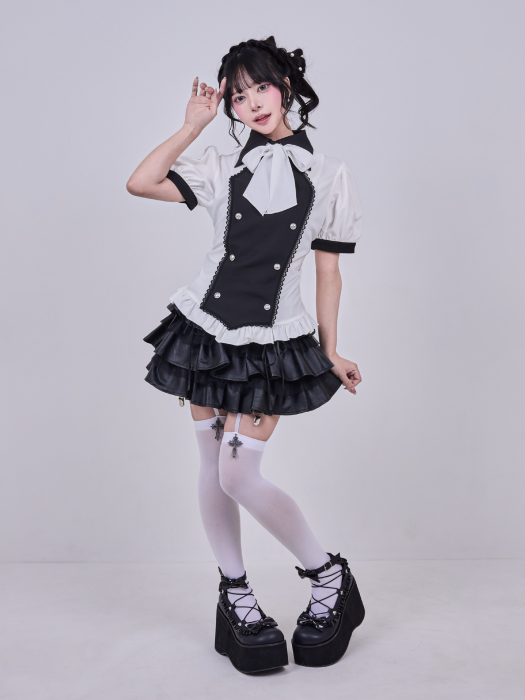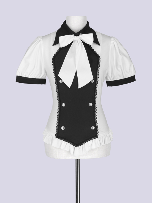 IMVAL / Napoleon Ribbon Blouse[BK×WH]