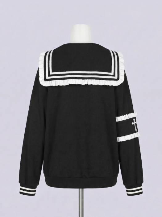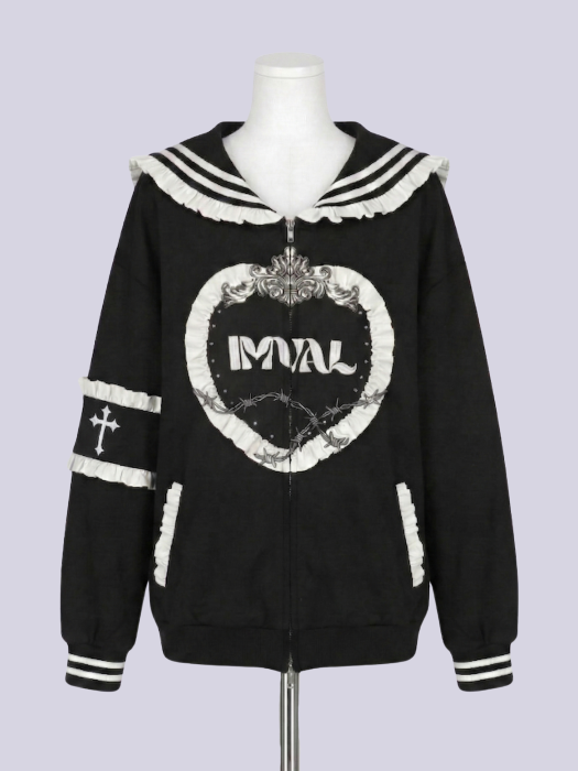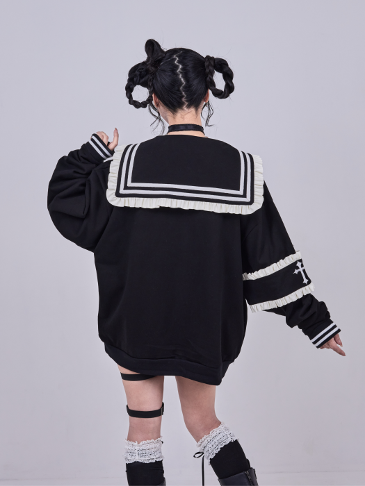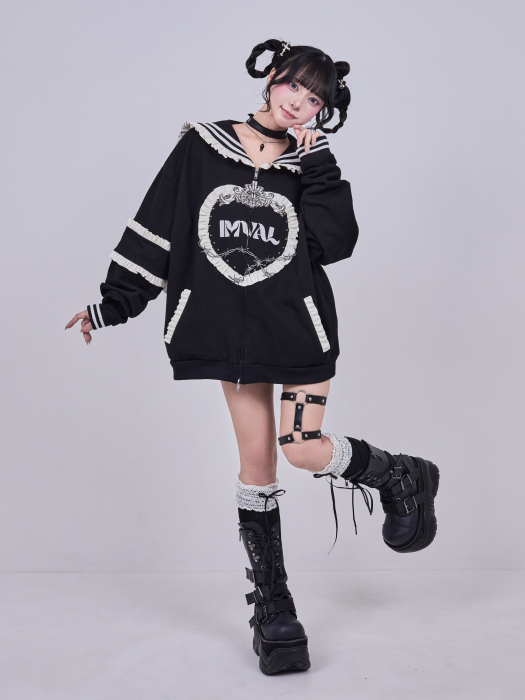 【予約】IMVAL / Frill Sailor Zip Sweatshirt[BLK]
