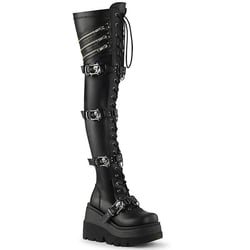 DEMONIA / EMILY-375 Blk Str Vegan Leather[EMI375/BVL]ニーハイブーツ