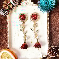 kuro_kawaE / 薔薇と棘のピアス 両耳用[赤]