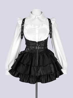 【即納】DEPEN DOLL / doll pleats patchwork skirt black(DP015)