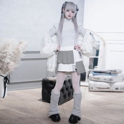【即納】DEPEN DOLL / doll pleats patchwork skirt white(DP016)