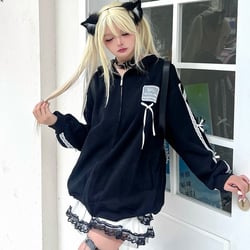SELECT / [Sub Era]レースステッチリボンZIPパーカー[BLK]